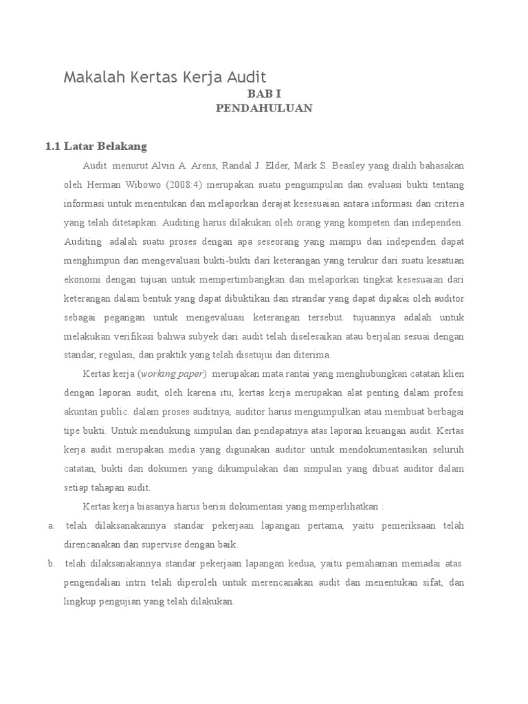 Full PDF Package Download Full PDF Package. Oleh karena itu kertas kerja merupakan alat penting dalam profesi akuntan public. AUDITING I MAKALAH KERTAS KERJA AUDIT Dosen Pengampu.