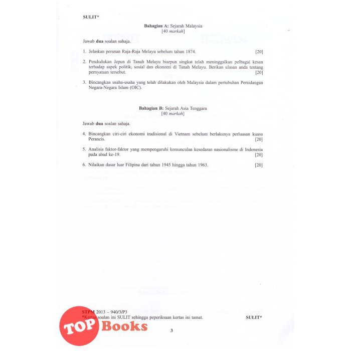 Topbooks Sasbadi Kertas Soalan Peperiksaan Tahun Tahun Lepas Stpm Sejarah Semester 3 2013 2018 Shopee Malaysia
